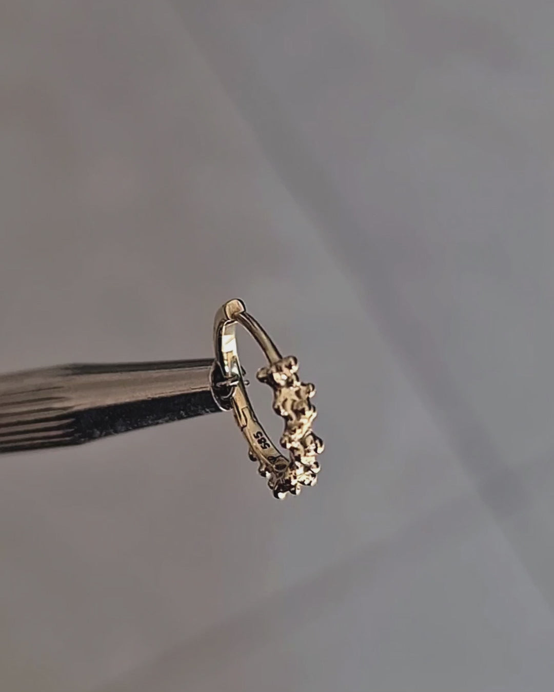 סט עגילים חישוק מארה - חישוקי מארה הם חישוקי זהב עם נוכחות ייחודית, בהשראת הטקסטורה המעניינת של אלמוגי הים. החישוקים מעוצבים בקווים טבעיים, כמעט פראיים, שמעניקים להם מראה אורגני מלא חיים. הם שומרים על איזון מושלם בין ייחודיות לעדינות.