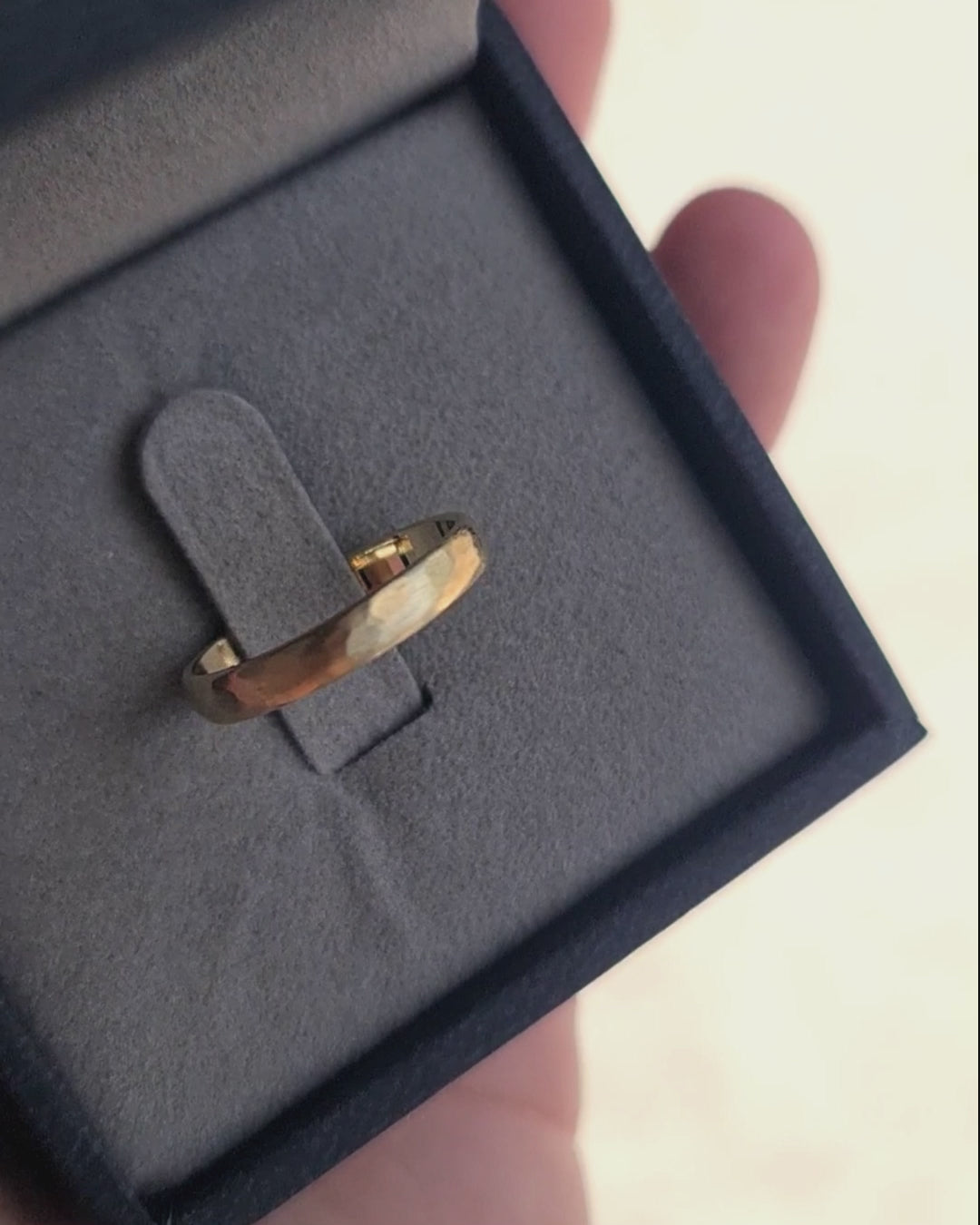 טבעת זהב מרוקעת בגימור מט רך ועדין.